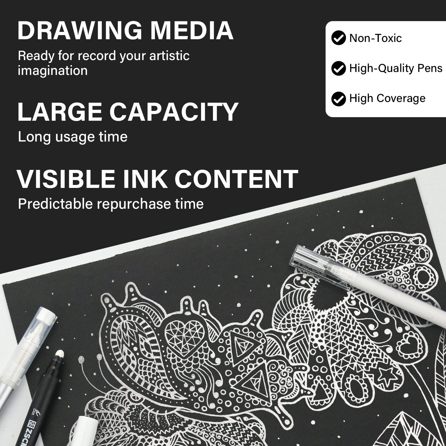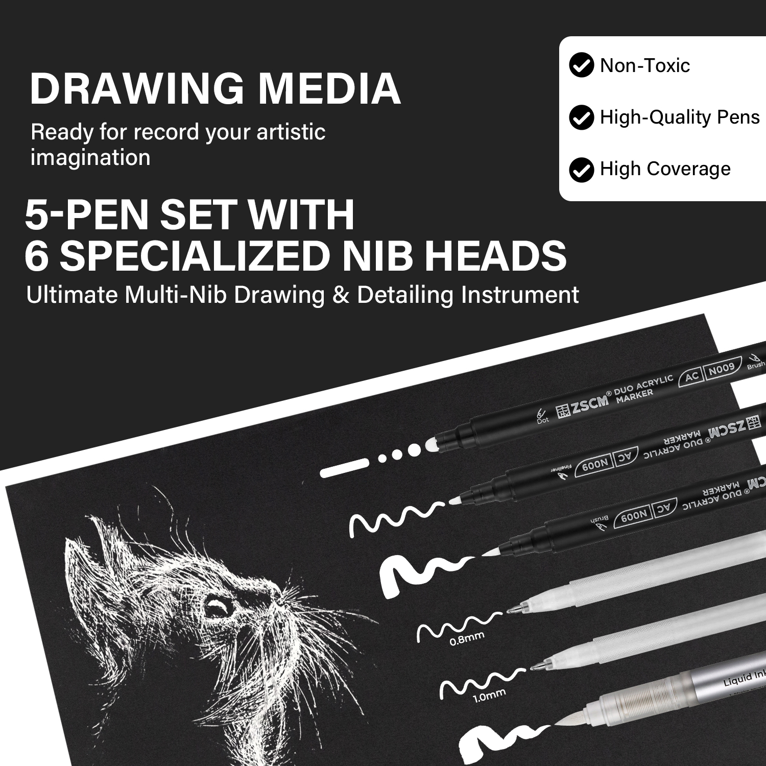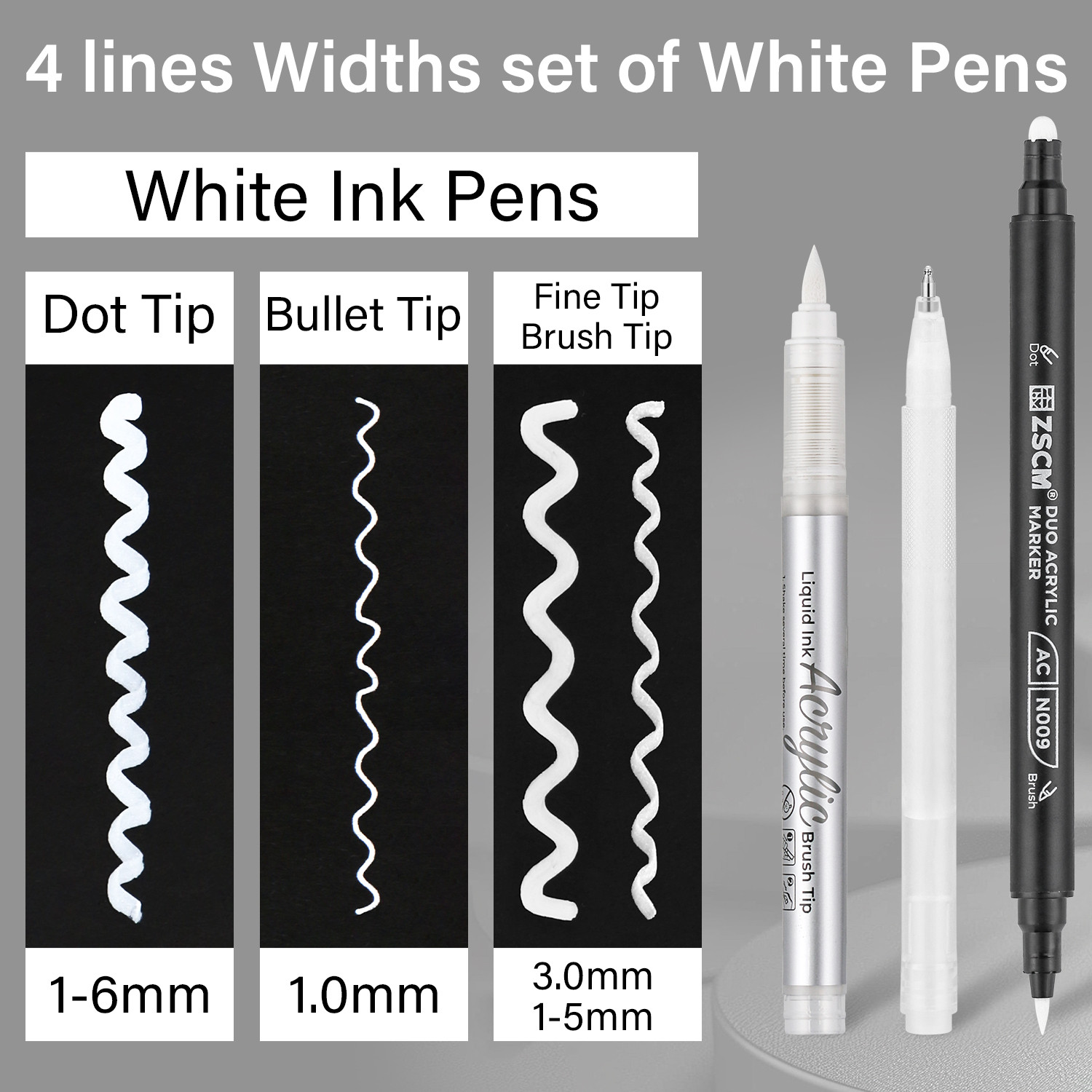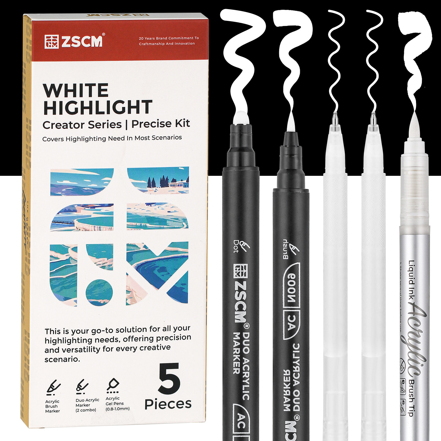 5 Pack White Acrylic Ink Pens for Drawing, Fine Point Gel Pens, Opaque Acrylic Markers for Black Paper Sketching, Illustration, Card Making