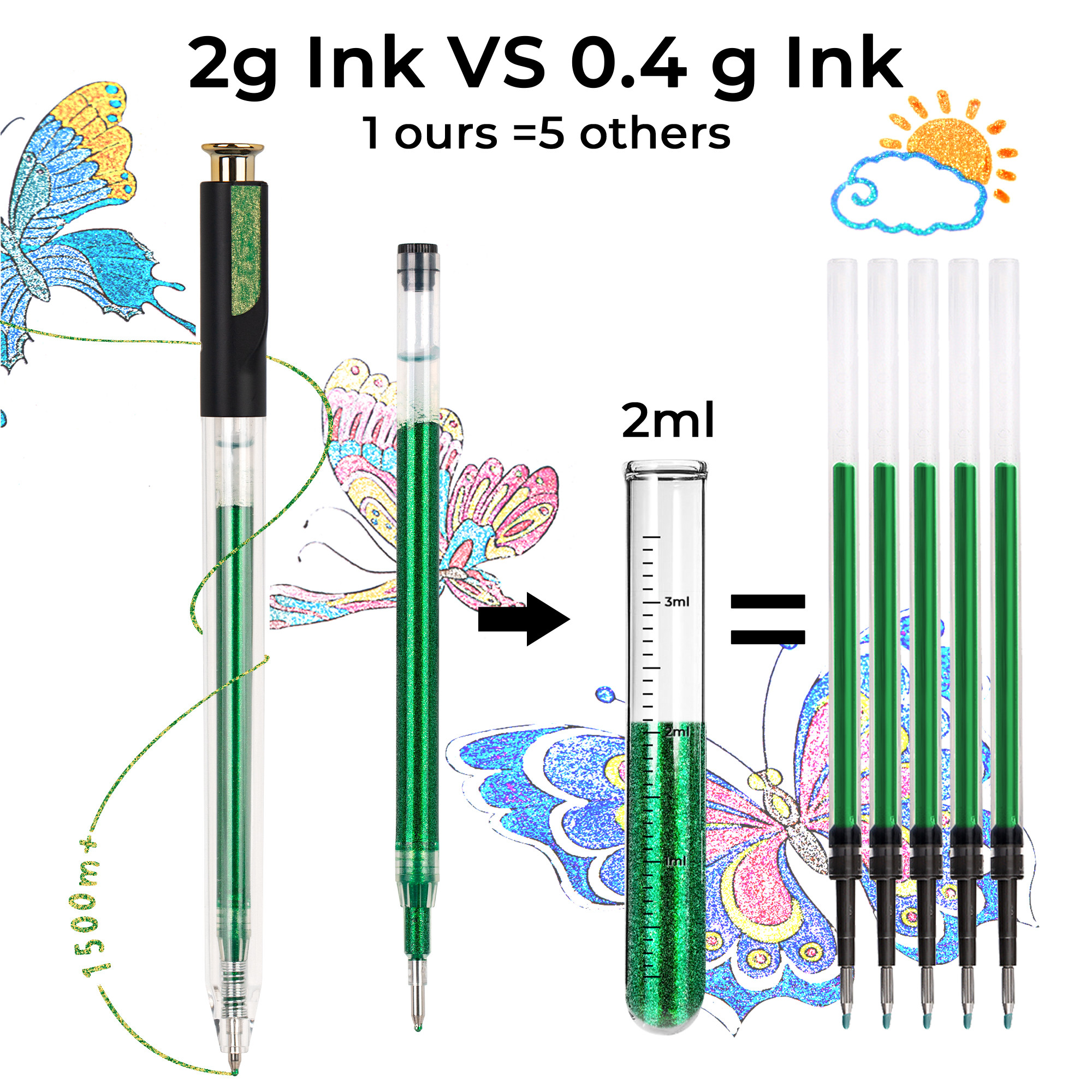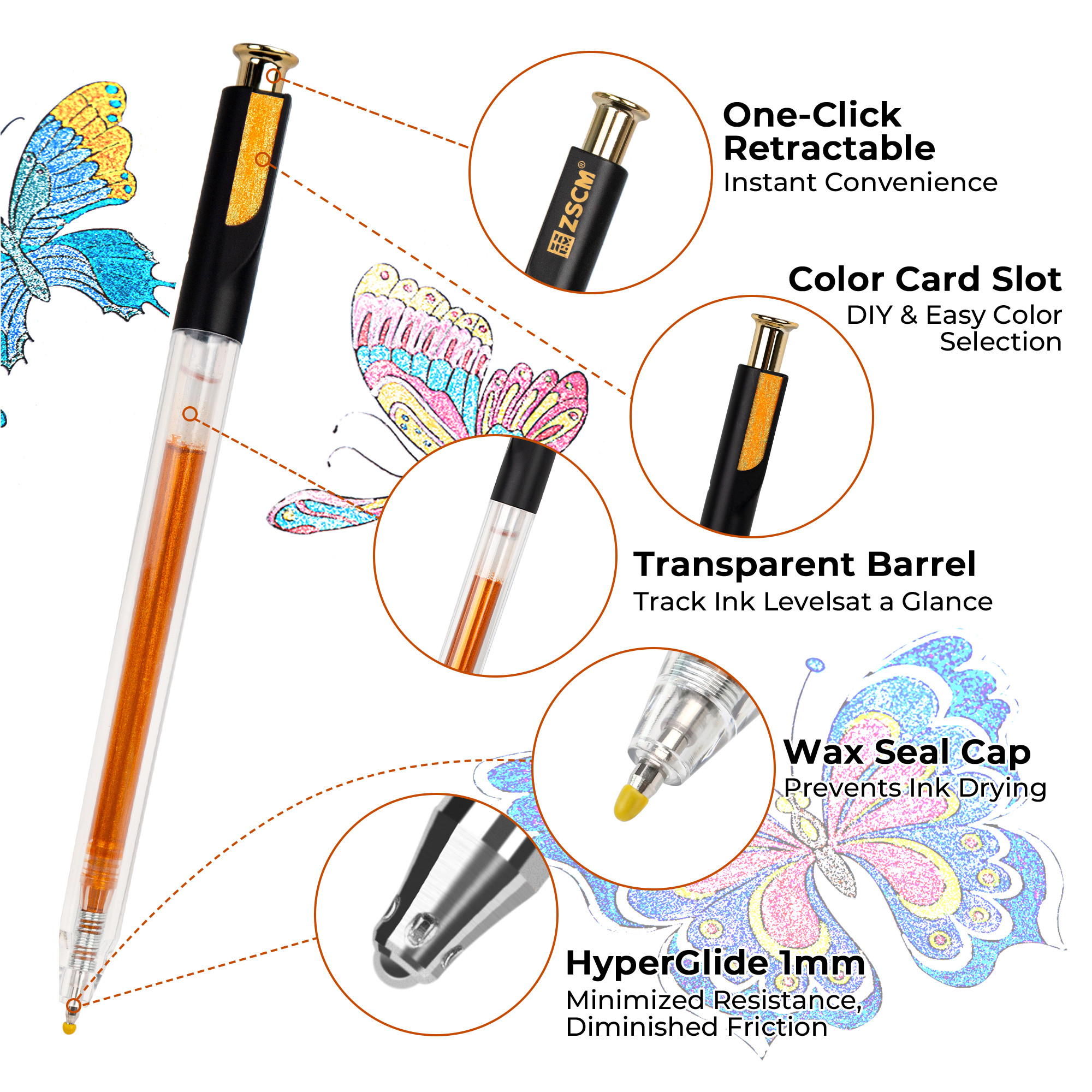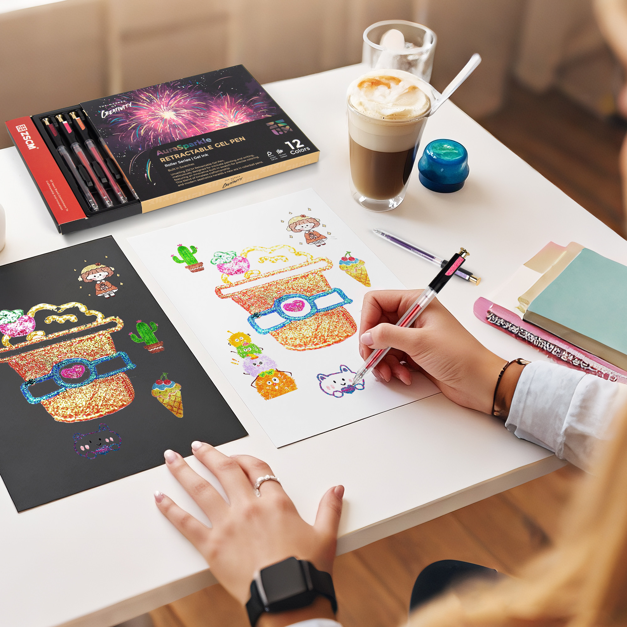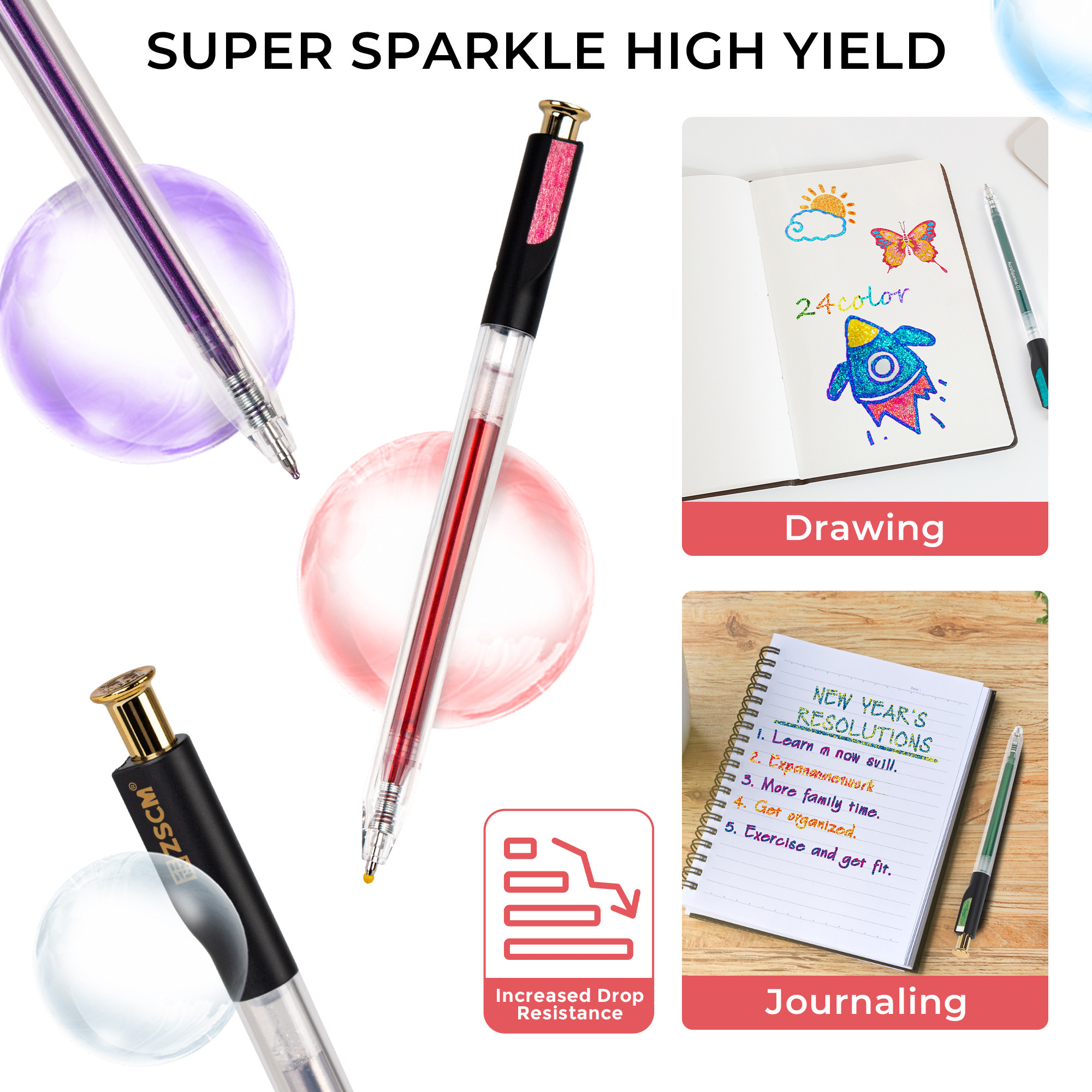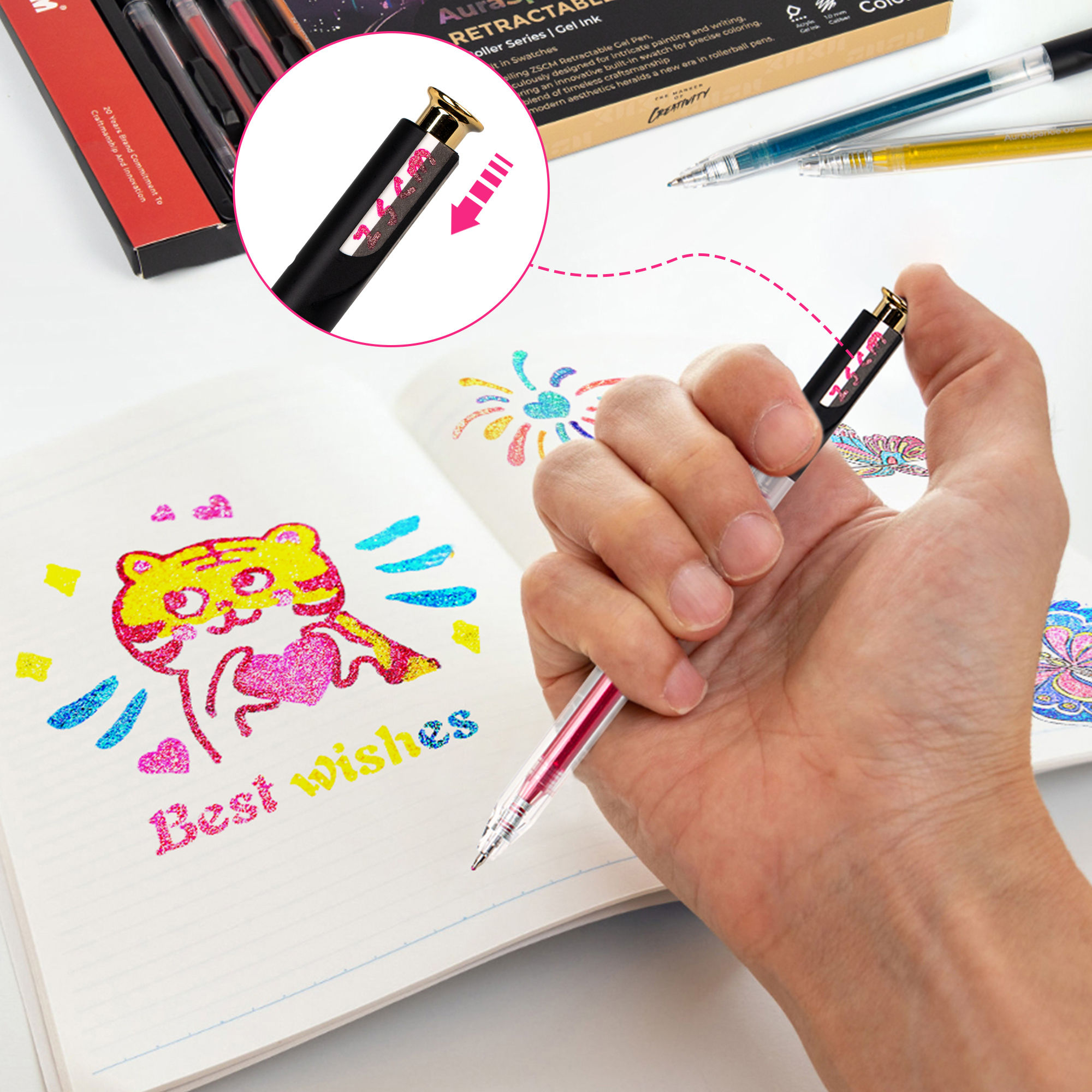 Retractable Super Glitter Gel Pens, 12 Colors Large Capacity Metallic Sparkle Gel Ink Pen for Adult Coloring Book Note Taking Aesthetic Art Supplies