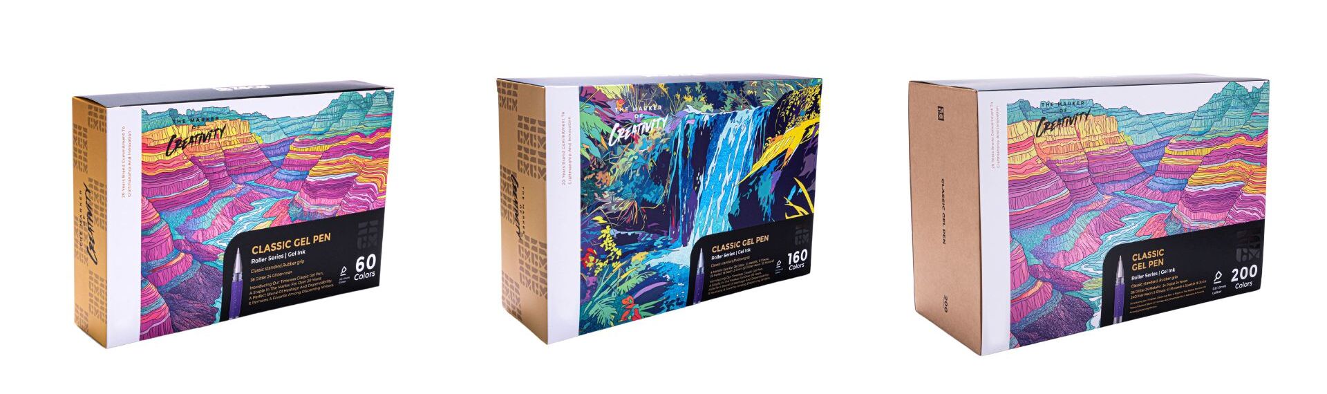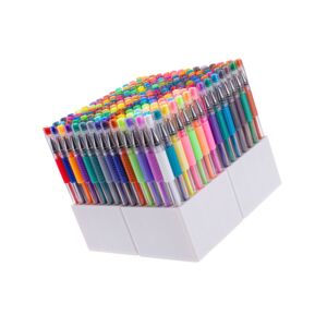 200 DIFFERENT COLORS- 200 Gel Pens Set include 9 different colors: 4 Metallic Sparkle,36 Glitter,24 Metallic,4 Classic,28 Pastel, 24 Neon, 16 Juice, 24 Glitter-Neon,43 Morandi Pens with free 200 refills,1 Adult Coloring Book,1 Canvas Carry Case.