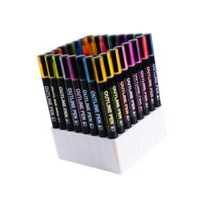 - ?24 Colors: Includes 24 shimmer metallic colors with a 2mm medium tip and self-outline silver borders.